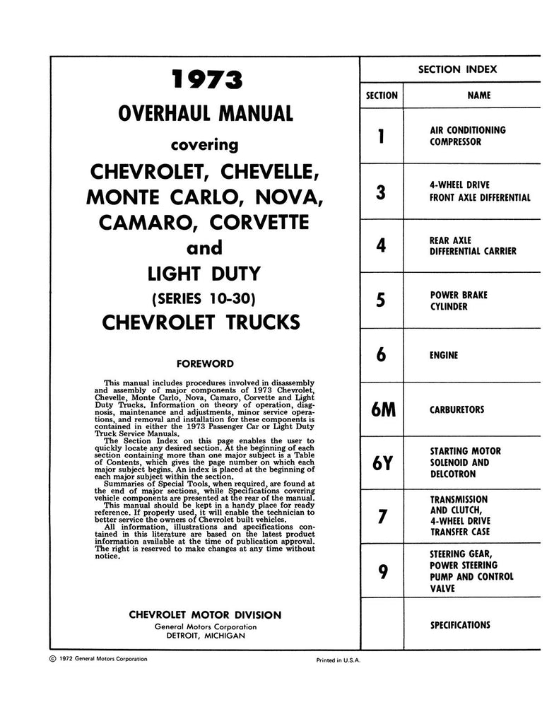 1973 Chevrolet Car & Truck Overhaul Manual (Licensed Quality Reproduction)