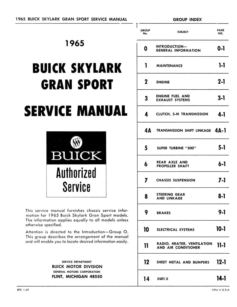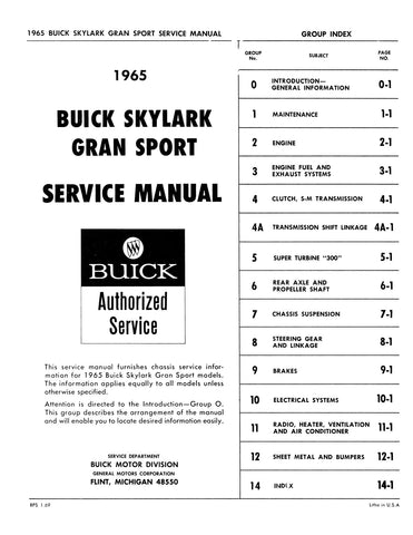 With the 1965 Buick Skylark Gran Sport Shop Manual Supplement in your toolbox, you have the most comprehensive literature at your fingertips to take on the most challenging repair, service and restoration projects. This factory written Detroit Iron shop manual is perfect for the restorer or anyone working on one of these vehicles.