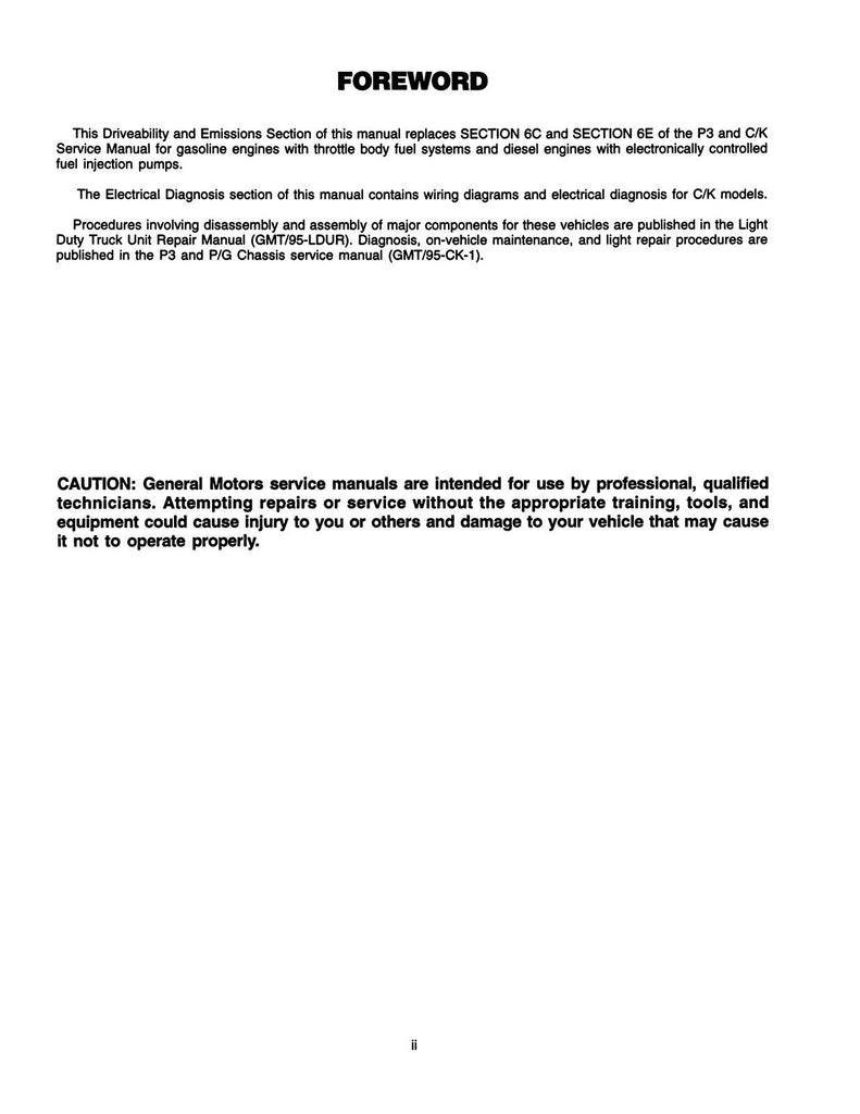 1995 Chevrolet GMC C / K Truck Driveability Emission Electrical Diagnosis Manual