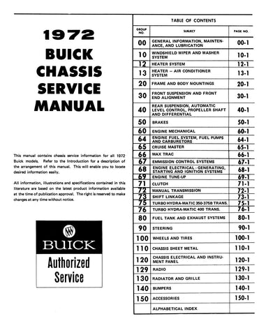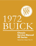 With the 1972 Buick Chassis Service Manual - All Series in your toolbox, you have the most comprehensive literature at your fingertips to take on the most challenging repair, service and restoration projects. This factory written Detroit Iron shop manual is perfect for the restorer or anyone working on one of these vehicles.
