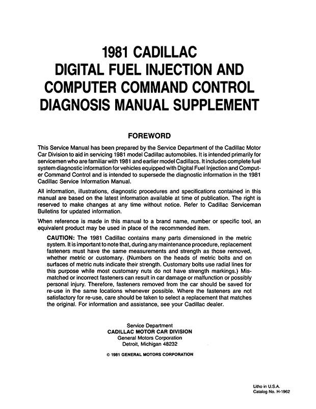 With the 1981 Cadillac Digital Fuel Injection Shop Manual Supplement in your toolbox, you have the most comprehensive literature at your fingertips to take on the most challenging repair, service and restoration projects. This factory written Detroit Iron shop manual is perfect for the restorer or anyone working on one of these vehicles.