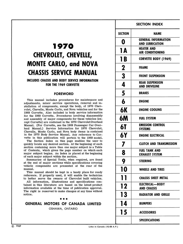 - 1970 Chevrolet MODELS COVERED: Camaro, Bel Air, Biscayne, Chevelle, El Camino, Impala, Kingswood, Monte Carlo, Nova, Townsman, Corvette
