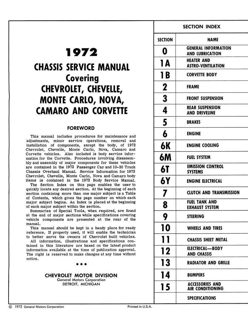 1972 Chevrolet Service Manual (Licensed Quality Reproduction)