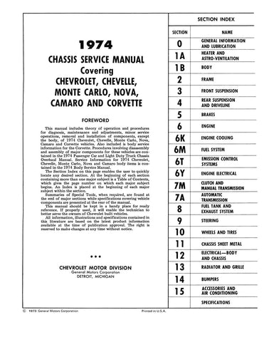 1974 Chevrolet Service Manual (Licensed Quality Reproduction)