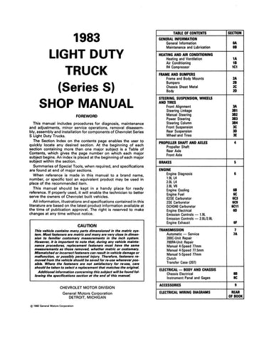 - 1983 Chevrolet MODELS COVERED: S10, S10 Blazer