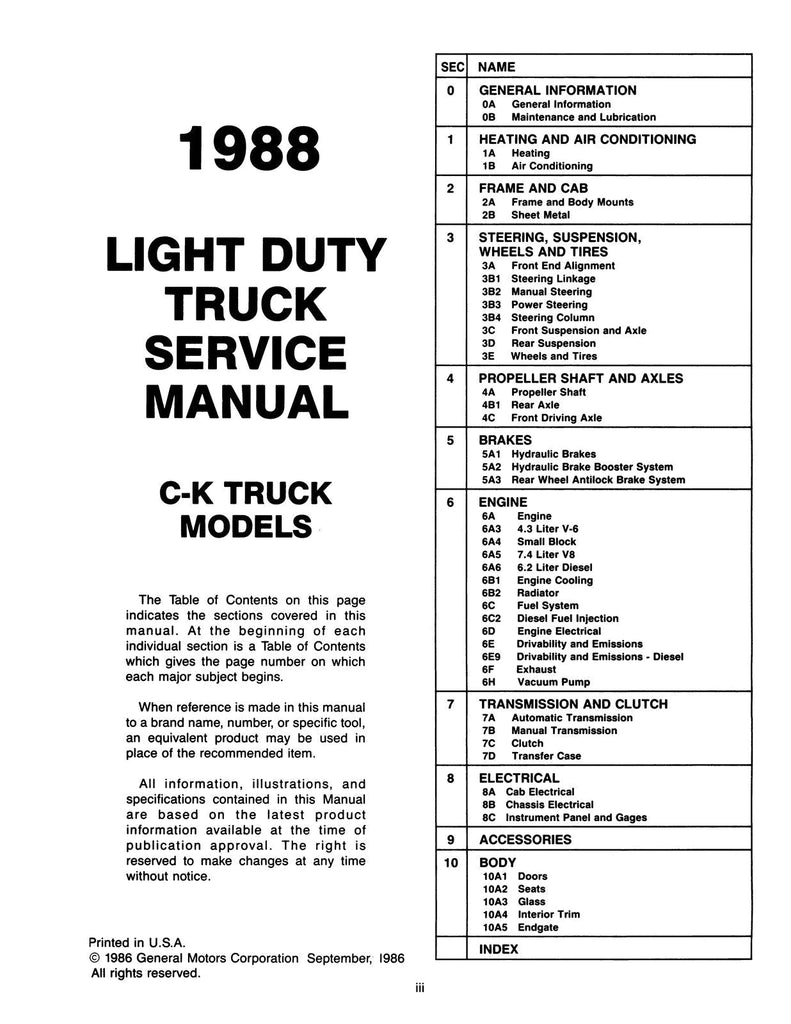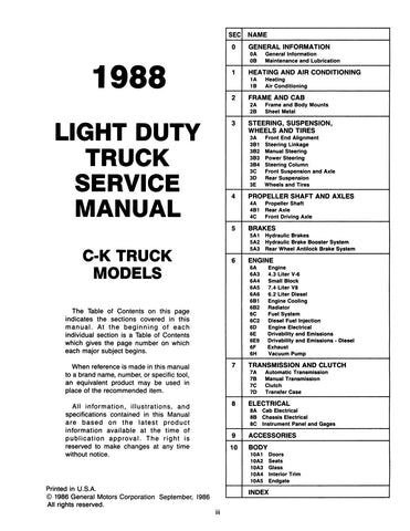 - 1988 Chevrolet MODELS COVERED: C1500, C2500, C3500, K1500, K2500, K3500