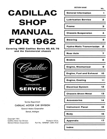 - 1962 Cadillac MODELS COVERED: Commercial Chassis, DeVille, Eldorado, Series 60 Fleetwood, Series 62, Series 75 Fleetwood