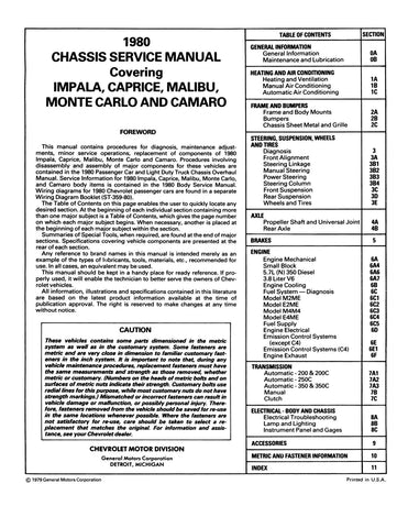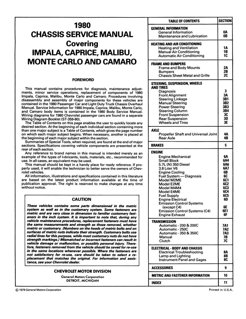 • 1980 Chevrolet MODELS COVERED: Camaro, Caprice, Impala, Malibu, Monte Carlo, El Camino