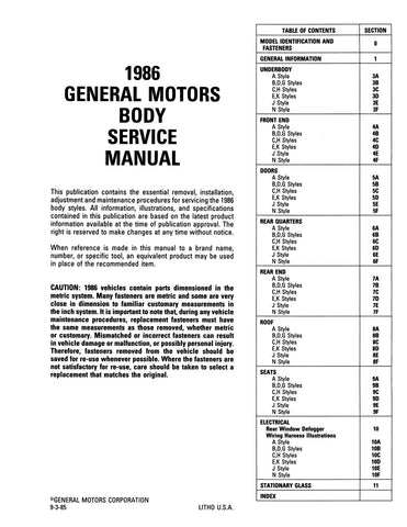 With the 1986 Fisher Body Service Manual in your toolbox, you have the most comprehensive literature at your fingertips to take on the most challenging repair, service and restoration projects. This factory written Detroit Iron shop manual is perfect for the restorer or anyone working on one of these vehicles.