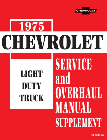 With the 1975 Chevrolet Light Duty Truck Service and Overhaul Manual Supplement in your toolbox, you have the most comprehensive literature at your fingertips to take on the most challenging repair, service and restoration projects. This factory written Detroit Iron shop manual is perfect for the restorer or anyone working on one of these vehicles.