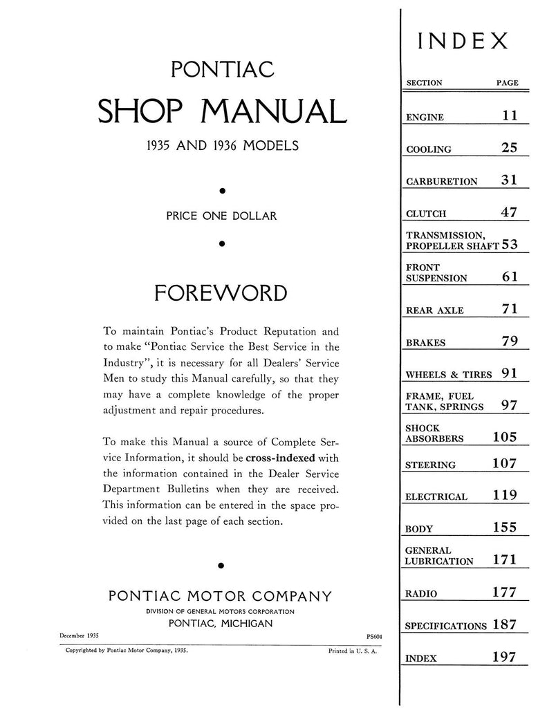• 1935-1936 Pontiac MODELS COVERED: Series 605, Series 701, Deluxe Series Silver Streak, Master Silver Streak
