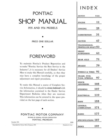 1935 - 1936 Pontiac Repair Shop Manual - Includes 11x17 Lube Foldout