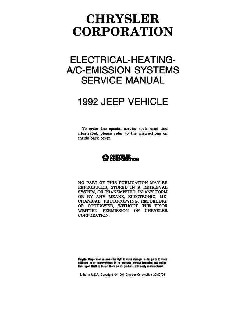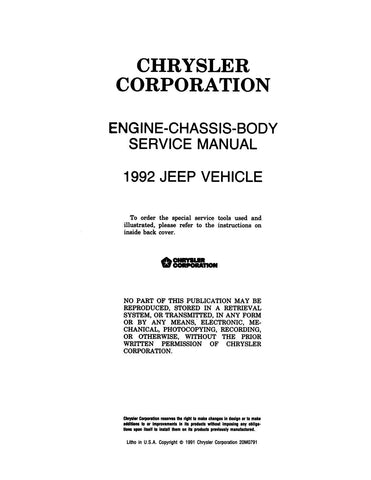 • 1992 Jeep MODELS COVERED: Cherokee, Comanche, Wrangler