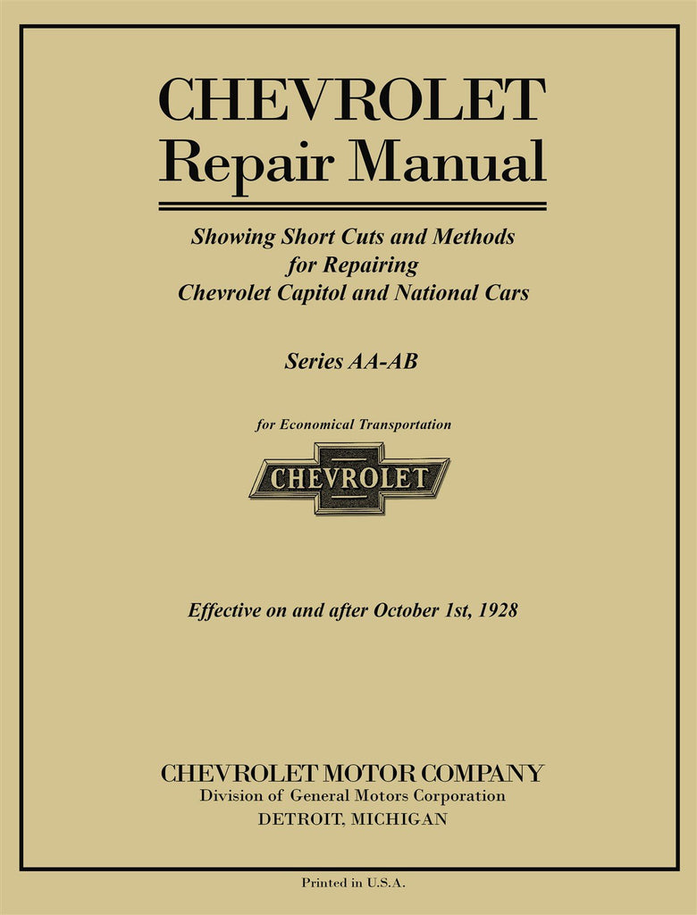1927 - 1928 Chevrolet Car & Truck Repair Shop Manual