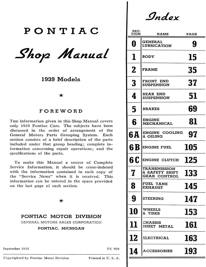 With the 1939 Pontiac Shop Manual in your toolbox, you have the most comprehensive literature at your fingertips to take on the most challenging repair, service and restoration projects. This factory-written Detroit Iron shop manual is perfect for the restorer or anyone working on one of these vehicles.
