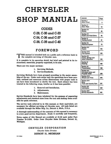 • 1941-1948 Chrysler MODELS COVERED: Windsor Series, Town & Country, Saratoga Series, Royal Series, New Yorker, Imperial C-40, Windsor, Saratoga, Royal, Crown Imperial, C28, C30, C33, C34, C36, C37