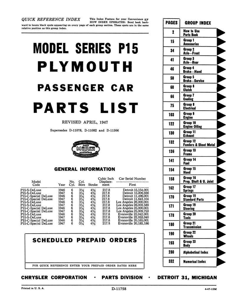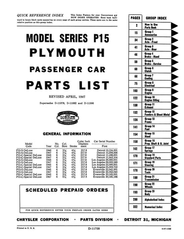 1946-1947 Plymouth Parts Catalog - Model Series P15