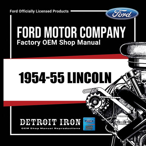 The 1954-1955 Lincoln Shop Manuals, Sales Data & Parts Books on CD is a digital product published by Detroit Iron and licensed by Ford. This Detroit Iron digital product provides a full set of original equipment manufacturer (OEM) repair and rebuild literature in digital / PDF format. This set of manuals and literature were originally authored and published by the car / truck manufacturer to be used by their dealership mechanics so they are very comprehensive. It features an easy-to-use bookcase in a garage scene containing a set of PDF manuals, catalogs, brochures and nostalgia for a specific year, make and model range.