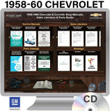 1958-1960 Chevrolet & Corvette Shop Manuals Sales Literature & Parts Books on CD