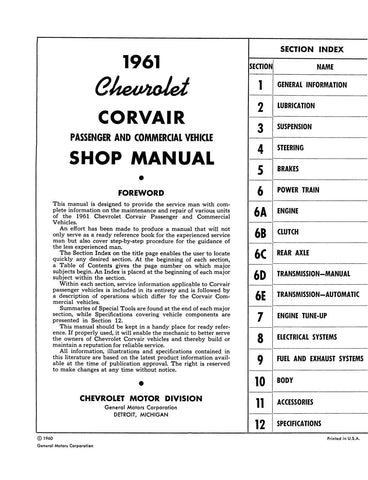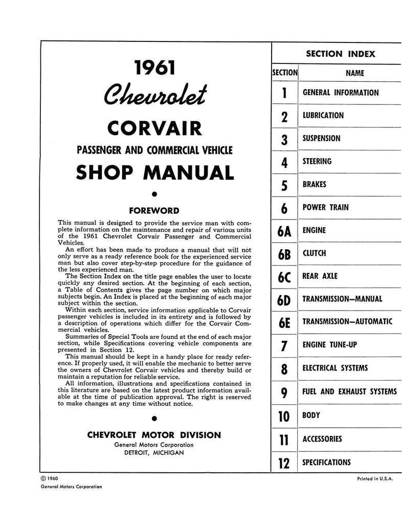 - 1961 Chevrolet MODELS COVERED: Corvair, Corvair Truck