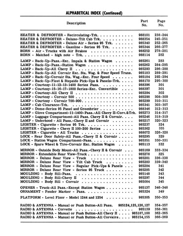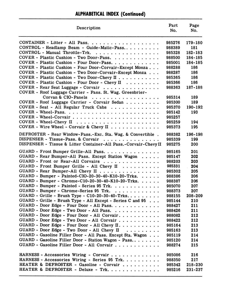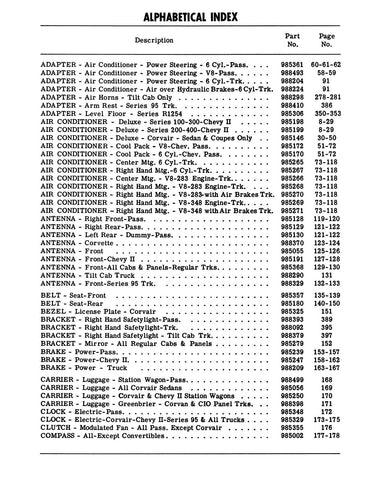 • 1962 Chevrolet MODELS COVERED: Bel Air, Biscayne, Impala, Chevy II, C10 Panel, C10 Pickup, C20 Pickup, C30 Panel, C30 Pickup, C40, C50, C60, C80, K10 Pickup, K20 Pickup, P10 Series, P20 Series, P30 Series, Suburban, Corvair, Corvair Truck, Corvette