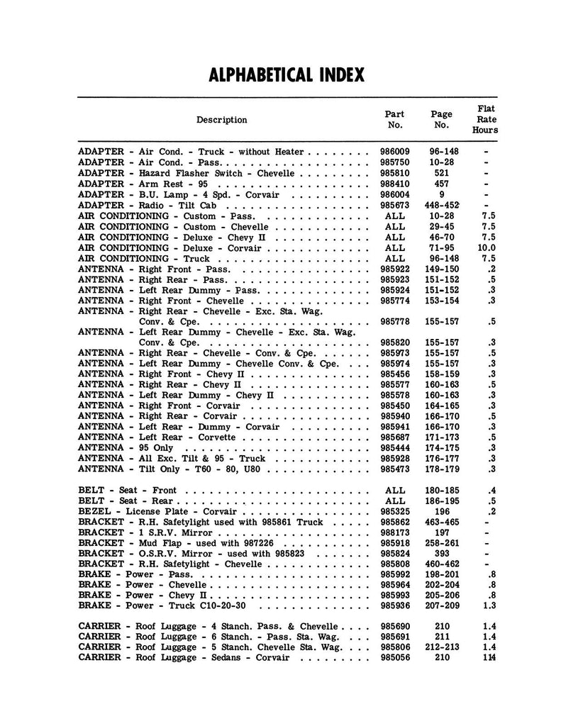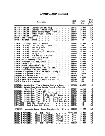 - 1964 Chevrolet MODELS COVERED: Corvette, Chevy II, Bel Air, Biscayne, Impala, Chevelle, El Camino, Malibu, C10 Panel, C10 Pickup, C20 Pickup, C30 Panel, C30 Pickup, K10 Pickup, K20 Pickup, P10 Series, P20 Series, P30 Series, Suburban, C50, C60, C80, G10 Van, Corvair, Corvair Truck