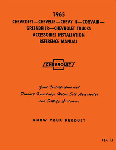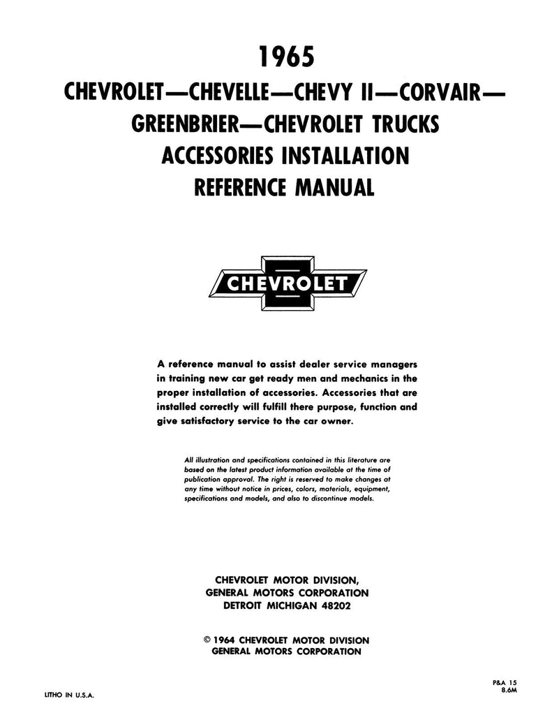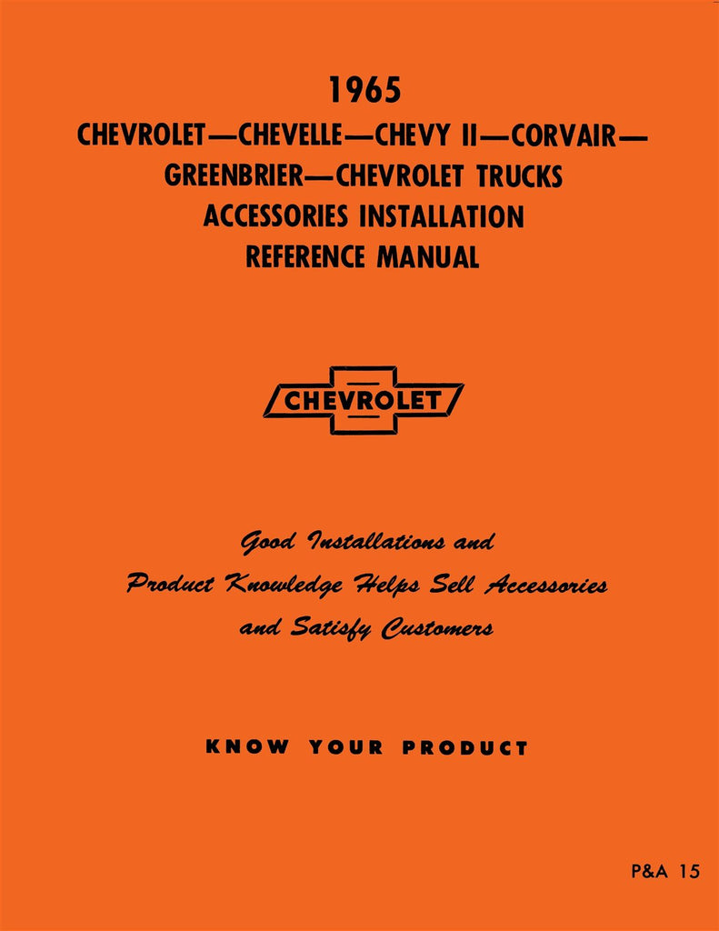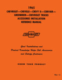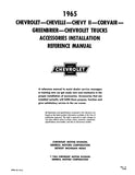 With the 1965 Chevrolet Car and Truck Accessories Installation Reference Manual in your toolbox, you have the most comprehensive literature at your fingertips to take on the most challenging repair, service and restoration projects. This factory-written Detroit Iron shop manual is perfect for the restorer or anyone working on one of these vehicles.
