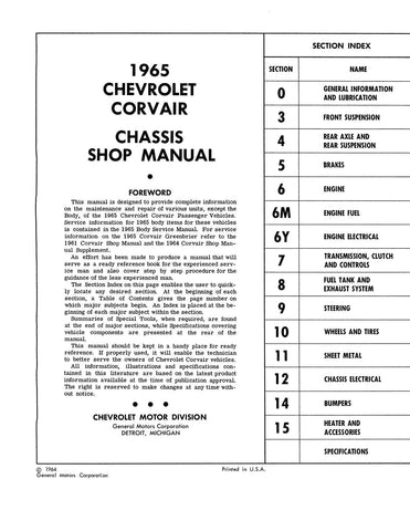 1965 Chevy Corvair Chassis Service Manual (Licensed High Quality Reproduction)