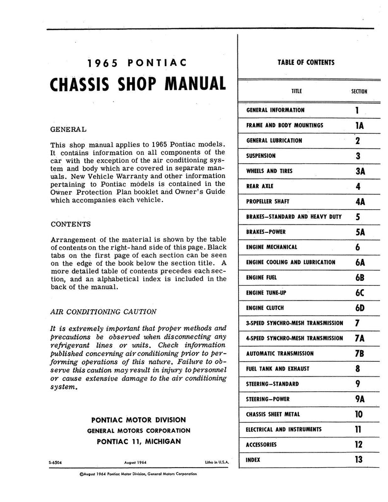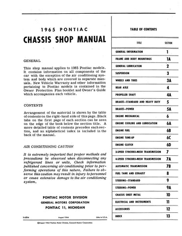 • 1965 Pontiac MODELS COVERED: Bonneville, Catalina, Grand Prix, Star Chief