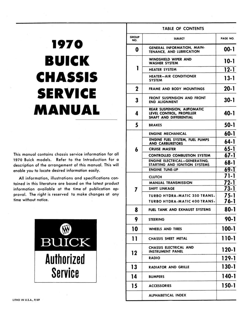 With the 1970 Buick Chassis Service Manual - 2 Vol Set in your toolbox, you have the most comprehensive literature at your fingertips to take on the most challenging repair, service and restoration projects. This factory written Detroit Iron shop manual is perfect for the restorer or anyone working on one of these vehicles.