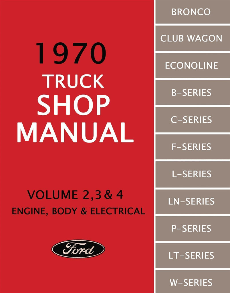 With the 1970 Ford Truck Shop Manual (5 Vol) in your toolbox, you have the most comprehensive literature at your fingertips to take on the most challenging repair, service and restoration projects. This factory-written Detroit Iron shop manual is perfect for the restorer or anyone working on one of these vehicles.