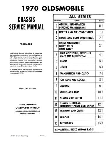 With the 1970 Oldsmobile Chassis Service Manual in your toolbox, you have the most comprehensive literature at your fingertips to take on the most challenging repair, service and restoration projects. This factory written Detroit Iron shop manual is perfect for the restorer or anyone working on one of these vehicles.
