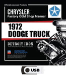 Refer below for specific details included in the 1972 Dodge Truck Shop Manual Detroit Iron USB product.