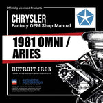 Refer below for specific details included in the 1981 Dodge Omni, Aries / Plymouth Horizon, Reliant Shop Manuals, Parts Book, Owner Manuals, & Sales Data Detroit Iron CD product.