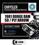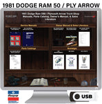 Refer below for specific details included in the 1981 Dodge Truck Ram 50 / Plymouth Arrow Shop Manuals, Owner Manual, Parts Book & Sales Literature Detroit Iron USB product.