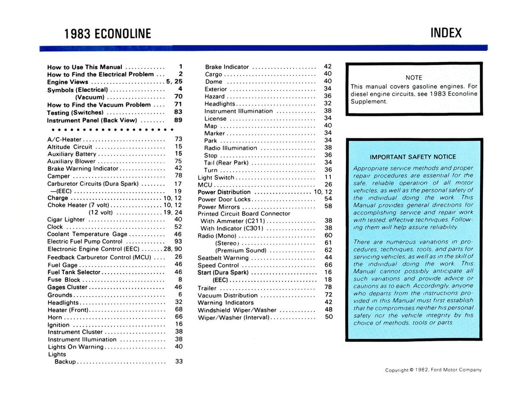 • 1983 Ford MODELS COVERED: E-100 Econoline, E-100 Econoline Club Wagon, E-150 Econoline, E-150 Econoline Club Wagon, E-250 Econoline, E-250 Econoline Club Wagon, E-350 Econoline, E-350 Econoline Club Wagon