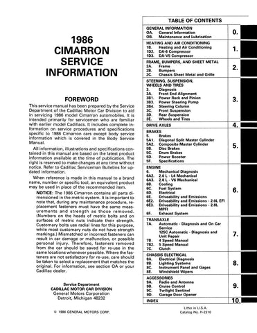 • 1986 Cadillac MODELS COVERED: Cimarron