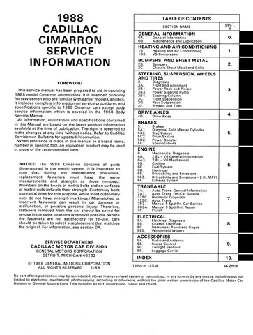 - 1988 Cadillac MODELS COVERED: Cimarron