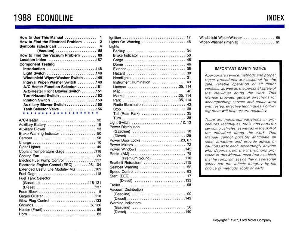 • 1988 Ford MODELS COVERED: E-150 Econoline, E-150 Econoline Club Wagon, E-250 Econoline, E-250 Econoline Club Wagon, E-350 Econoline, E-350 Econoline Club Wagon