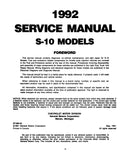 • 1992 Chevrolet MODELS COVERED: S10, S10 Blazer
